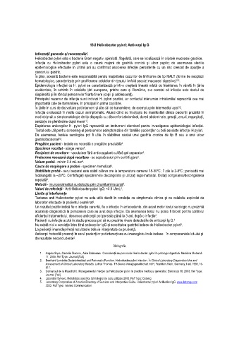 Valori de referinŃă - Anti-Helicobacter pylori IgG: <0.9 U/mL .
