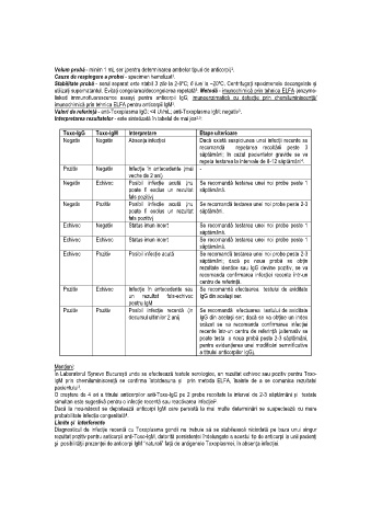 Valori de referinŃă - anti-Toxoplasma IgG: <4 UI/mL; anti-Toxoplasma IgM: negativ .