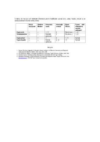 Cupru seric ↓ ↓ ↑, ↑↑ ↑ Normal sau ↓ ↑, ↑↑