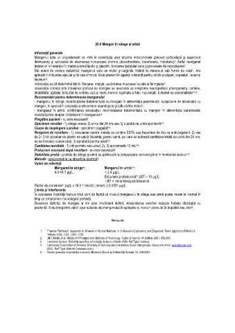 - manganul în urină: confirmarea intoxicaŃiei; monitorizarea tratamentului cu mangan în alimentaŃia parenterală;