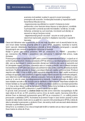 precursoare a amiloidului (APP). Acumularea de β-amiloid începe în cazul acestor pacienţi în prima