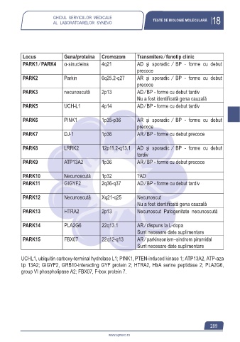 PARK1 ⁄ PARK4 α-sinucleina 4q21 AD şi sporadic ⁄ BP - forme cu debut