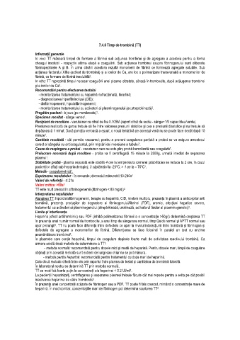 uşor prelungit . TT nu poate face diferenŃa între defectele ce apar la nivelul interacŃiunii între trombină şi fibrinogen şi