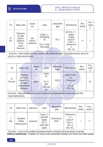 Tip Tablou clinic Aspect Lipide Ultracentrifu- Electroforeză Risc venţă
