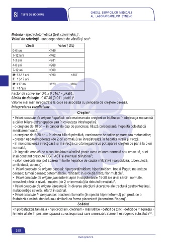 - valori crescute mai pot apărea în bolile hepatice de cauză infiltrativă (sarcoidoză, tuberculoză,