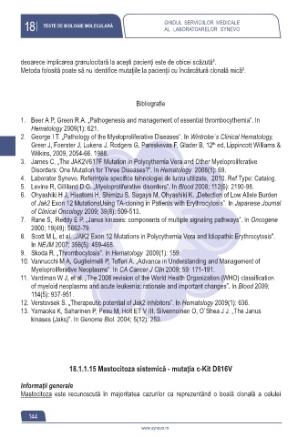 18.1.1.15 Mastocitoza sistemică - mutaţia c-Kit D816V
