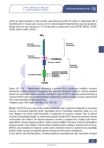 Figura 18.1.1.15: Reprezentare schematică a proteinei Kit şi localizarea mutaţiilor; domeniul