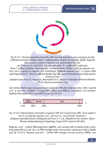 Fig. 18.3.8.2: Reprezentarea schematică a regiunilor ORF-ului C al genomului HBV. De la capătul 3’