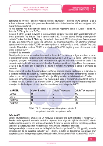 Tabel 17.9.1.3 Markeri pentru diferenţierea celulelor T