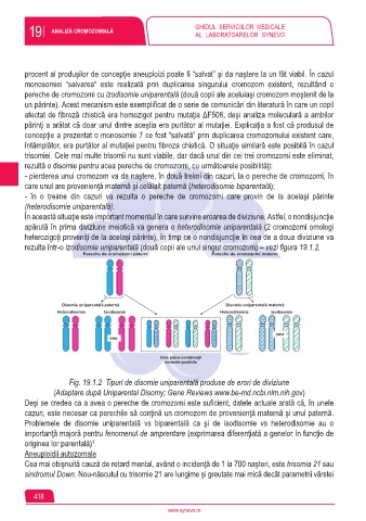rezulta într-o izodisomie uniparentală (două copii ale unui singur cromozom) – vezi figura 19.1.2.