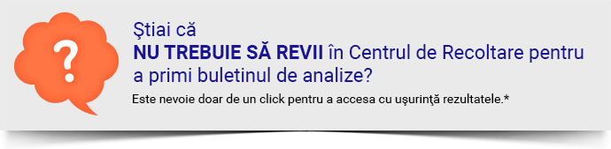 *Rezultatele anumitor teste nu sunt disponibile pe e-mail sau online, ci pot fi eliberate doar din recepţiile Synevo.